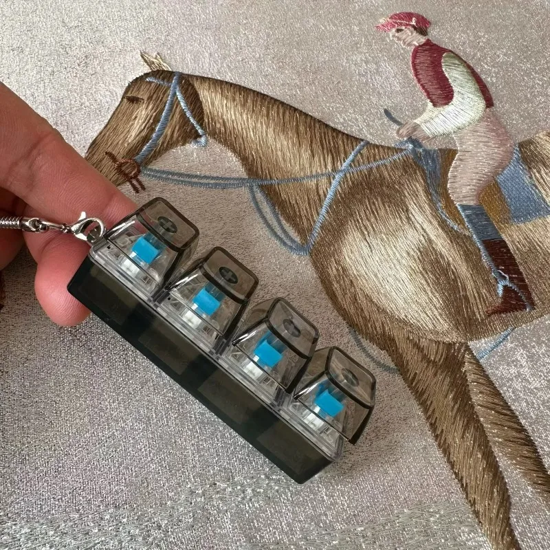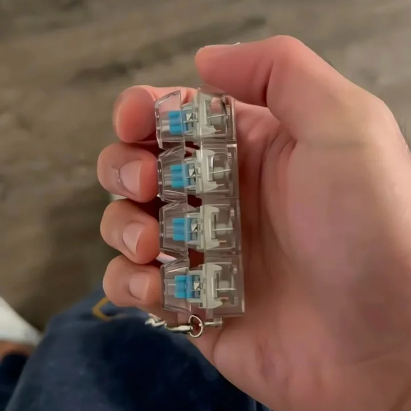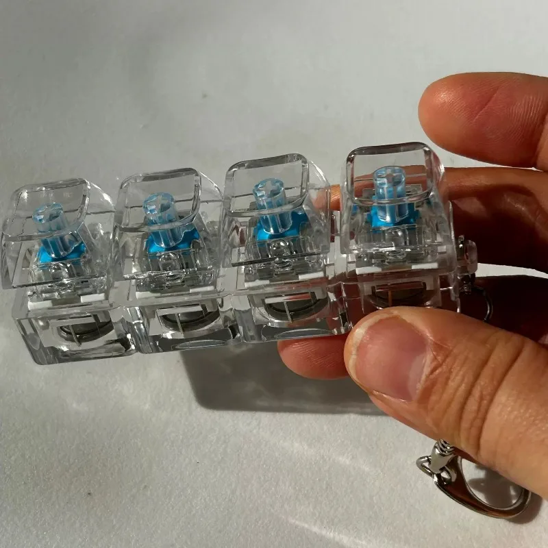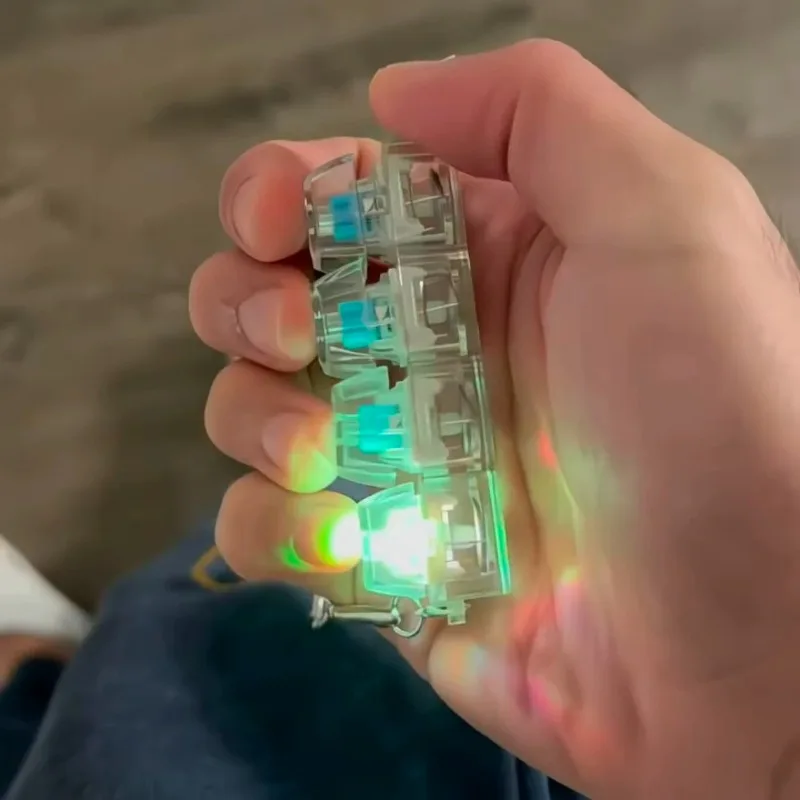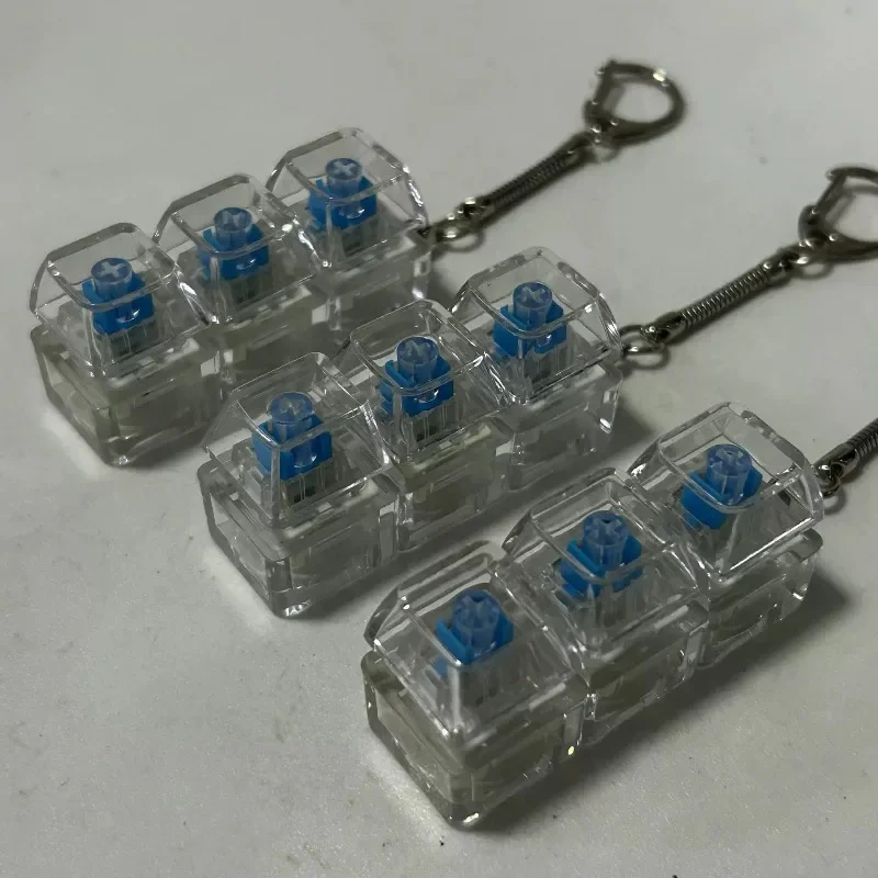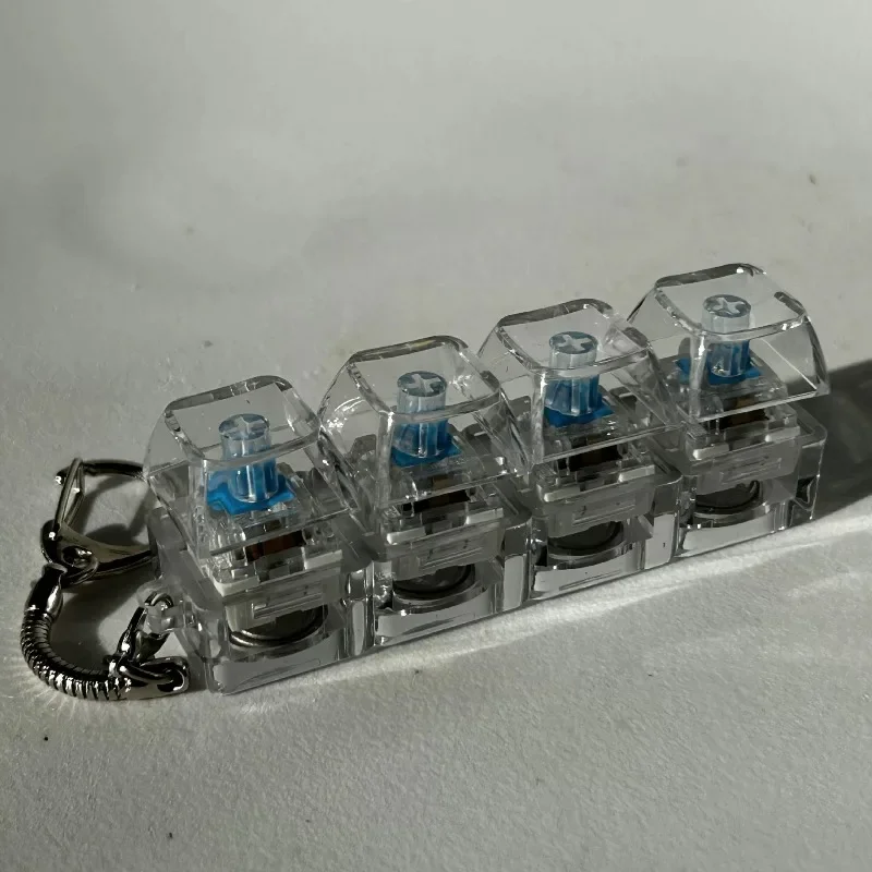 4 Keys Decompression Keyboard Keychains Transparent Luminous Stress Relief for Men Women Keyrings DIY Button Keycap Pendants